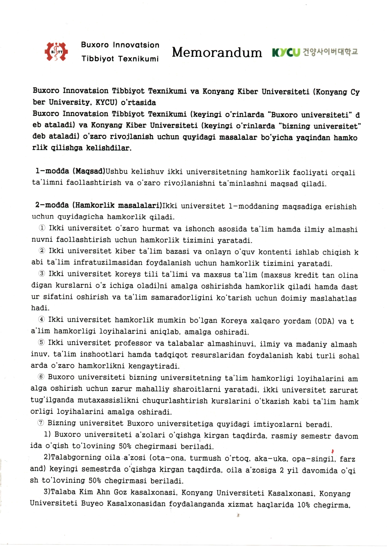 Bukhara Innovative Education and Medical University, we provide a dynamic and forward-thinking learning environment that prepares students for excellence in education, healthcare, and research. Our offerings include: